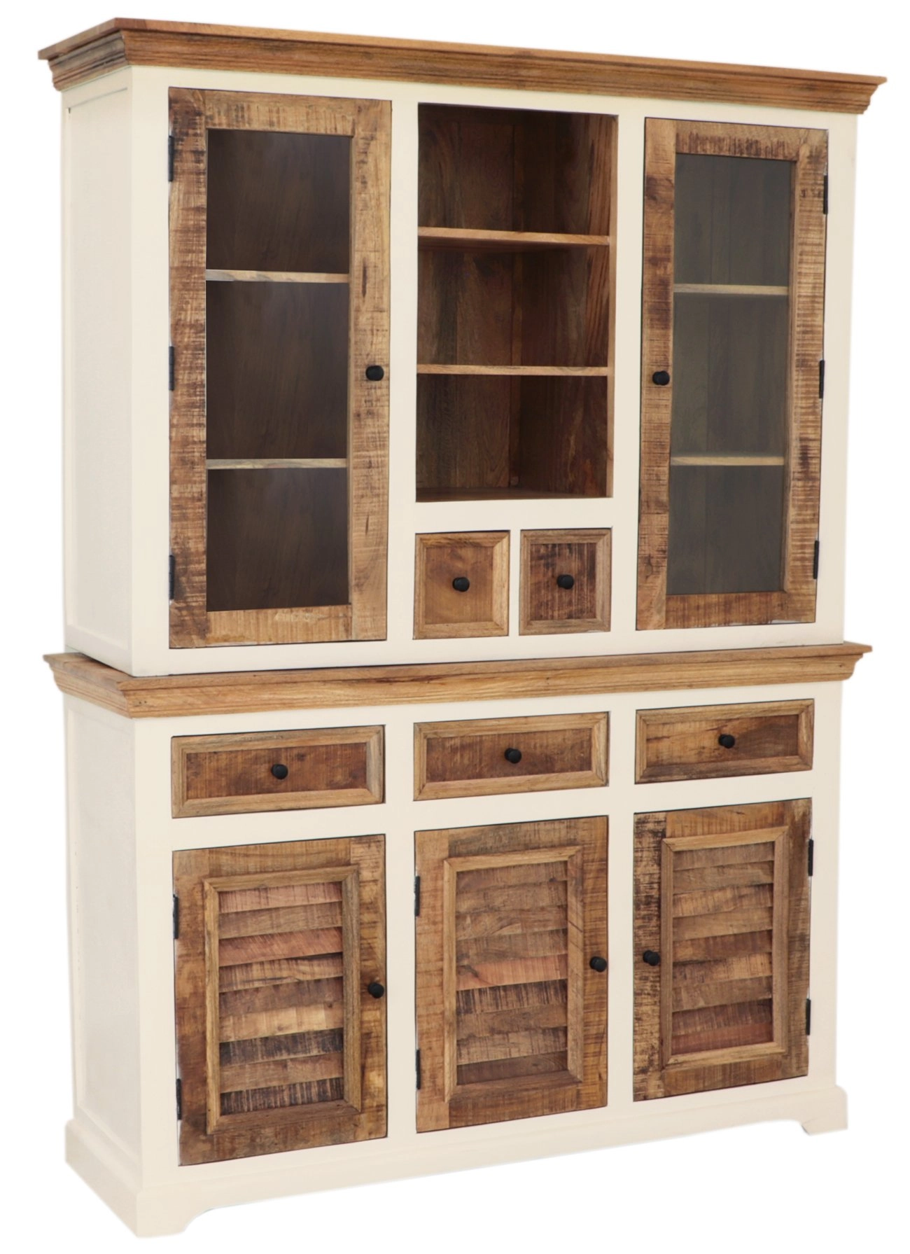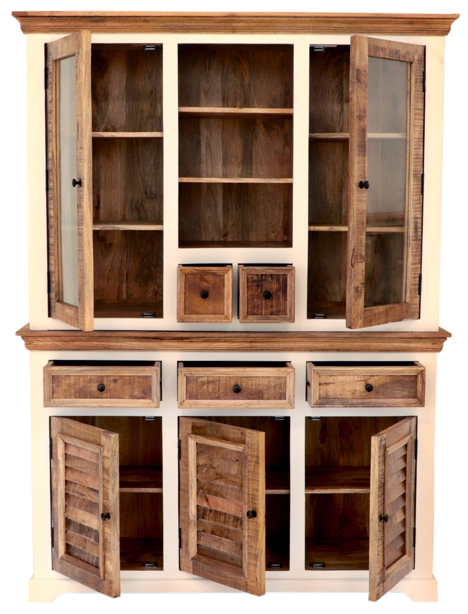 Tento nábytek z masivu je vyroben z kvalitního dřeva manga, které je známé svou pevností a jedinečnou texturou. Mango, jako materiál, přináší do vašeho interiéru přírodní krásu a trvanlivost. Masivní nábytek jako je tato vitrína přináší do vašeho domova kulturní dědictví a ušlechtilou estetiku.