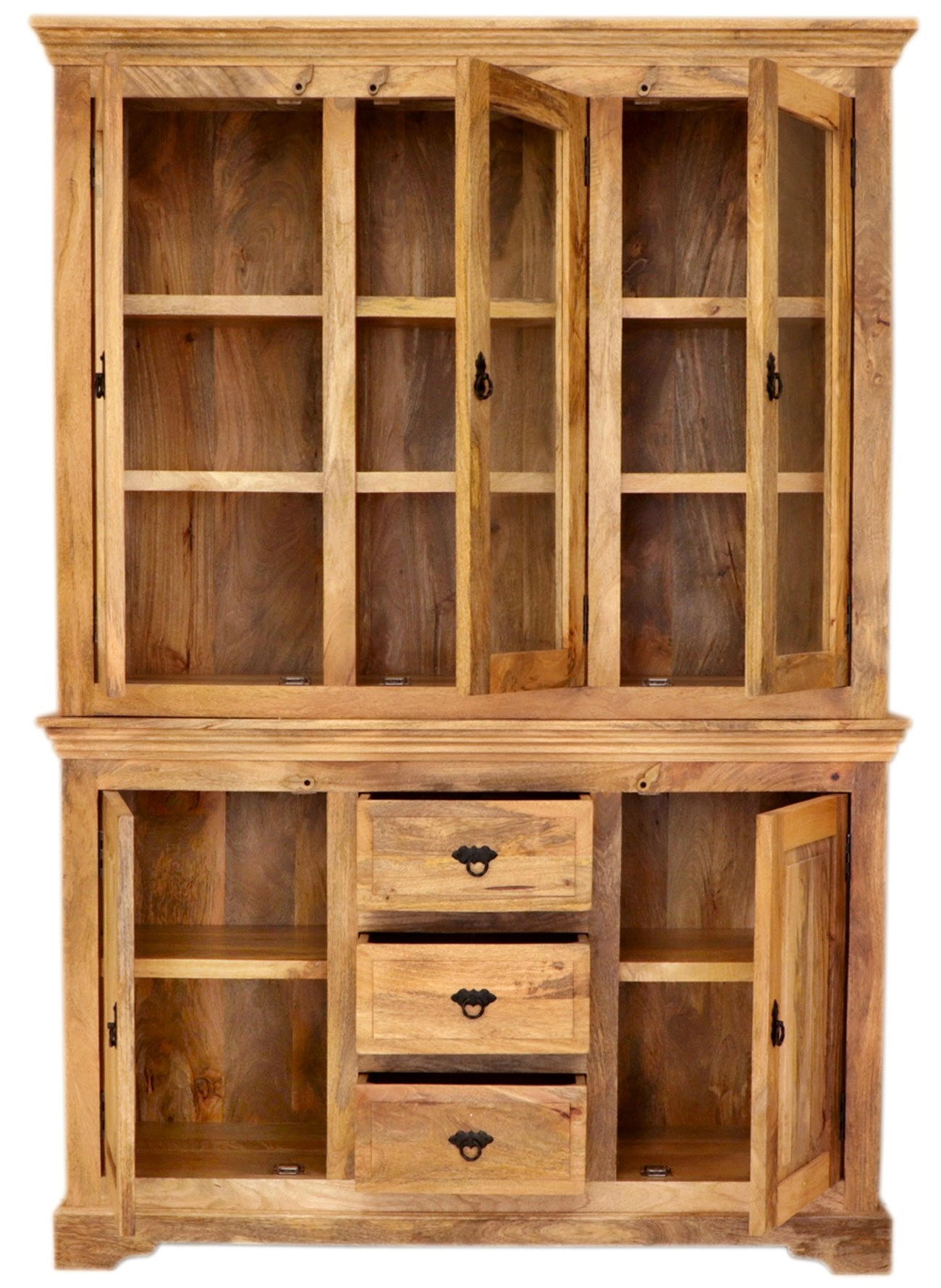 Vitrína z masivu mango 140x200x45 je ztělesněním elegance a tradičního řemeslného umění. Tento masivní nábytek, pocházející z exotické Indie, je vyroben z vysoce kvalitního mangového dřeva, které je známé svou pevností a jedinečným vzhledem. Kategorie jídelna perfektně vyjadřuje její určení – vitrína je ideální pro prezentaci porcelánu, sklenic, nebo cenných dekorací, které přinesou vaší jídelně dotek luxusu a elegance.