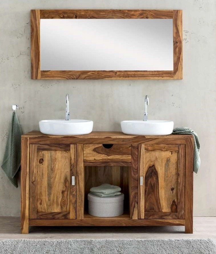 Skříňka pod umyvadlo z masivu je výjimečným kouskem, který nejen obohatí vaši koupelnu o estetickou hodnotu, ale také poskytne praktické úložné řešení. Tato robustní skříňka o rozměrech 130x70x45 cm je vyrobena z ušlechtilého palisandru, který je ceněn pro svou trvanlivost a přirozenou krásu. Původem z Indie, tato skříňka odráží mistrovství tradičního řemesla a přináší do vašeho domova kus exotiky.