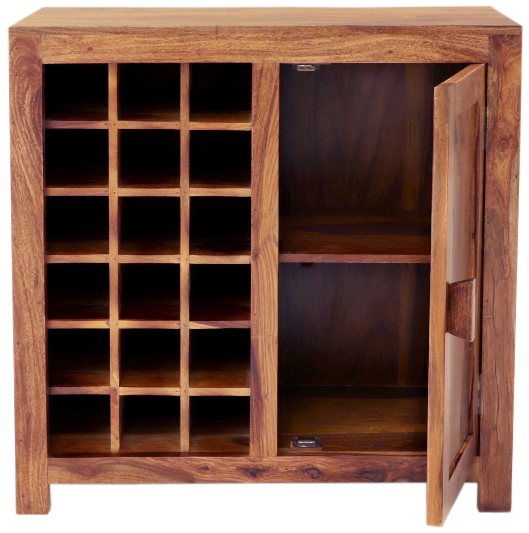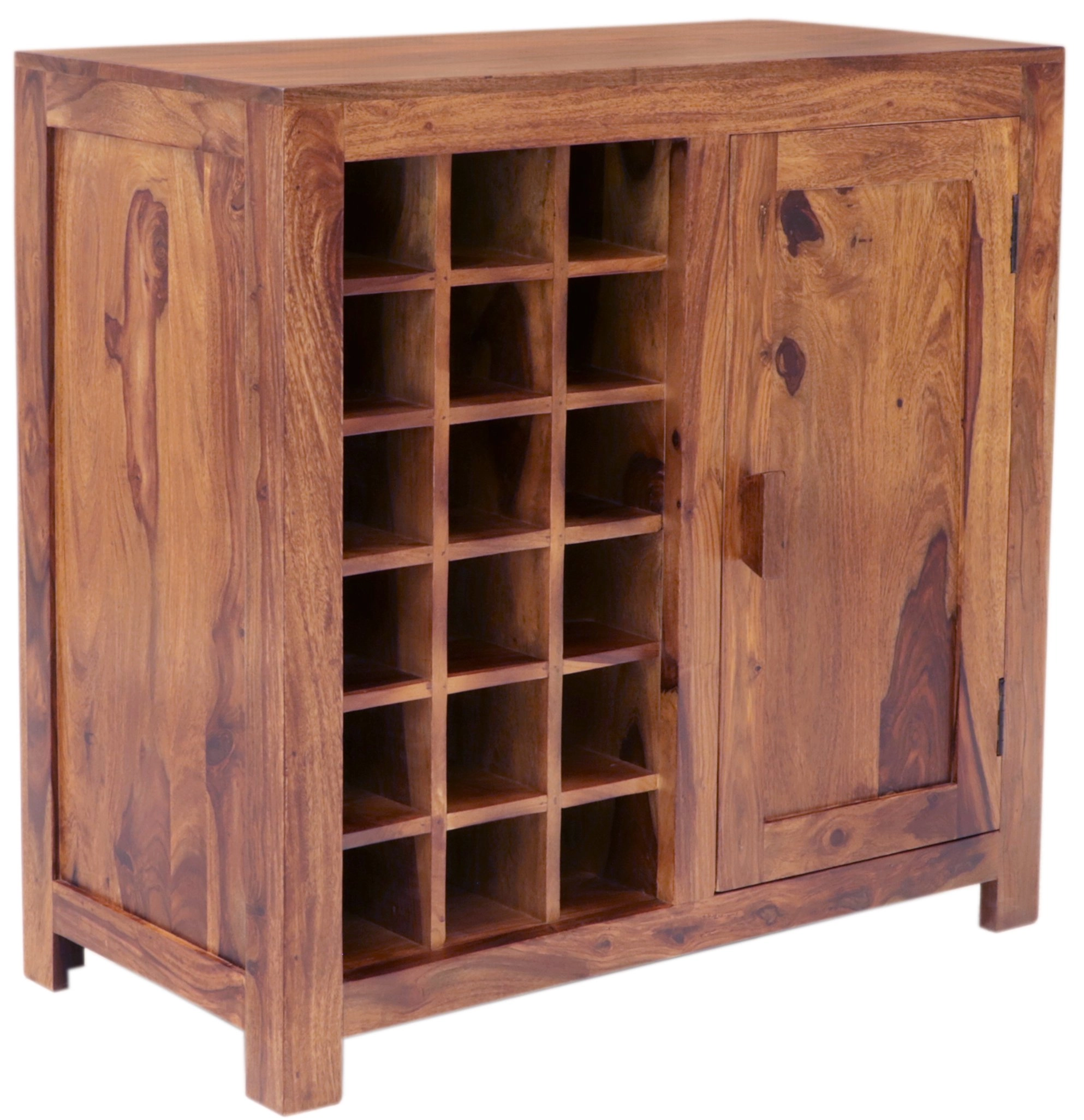 Objevte kouzlo exotického dřevěného nábytku s naší prestižní dřevěnou vinotékou z masivu palisandru. Tento nádherný kus, ručně vyrobený v srdci Indie, je spojení elegance a funkčnosti, které promění váš domov v oázu luxusu. Dřevěná vinotéka o rozměrech 90x90x45 cm dokáže uskladnit vaše nejvybranější lahve vína s maximální péčí. Vyrobená z mimořádně odolného a krásného indického palisandru, tato vinotéka je nejen trvalým doplňkem vašeho interiéru, ale i zárukou kvality a dlouhé životnosti.