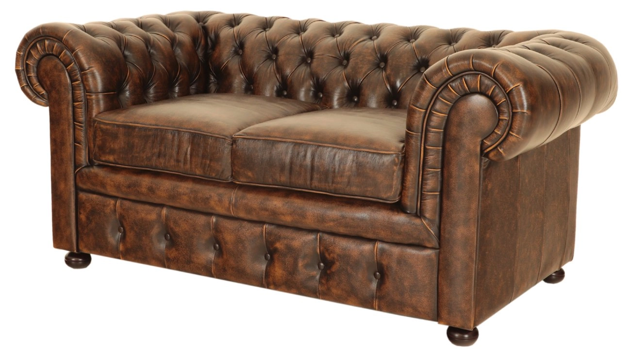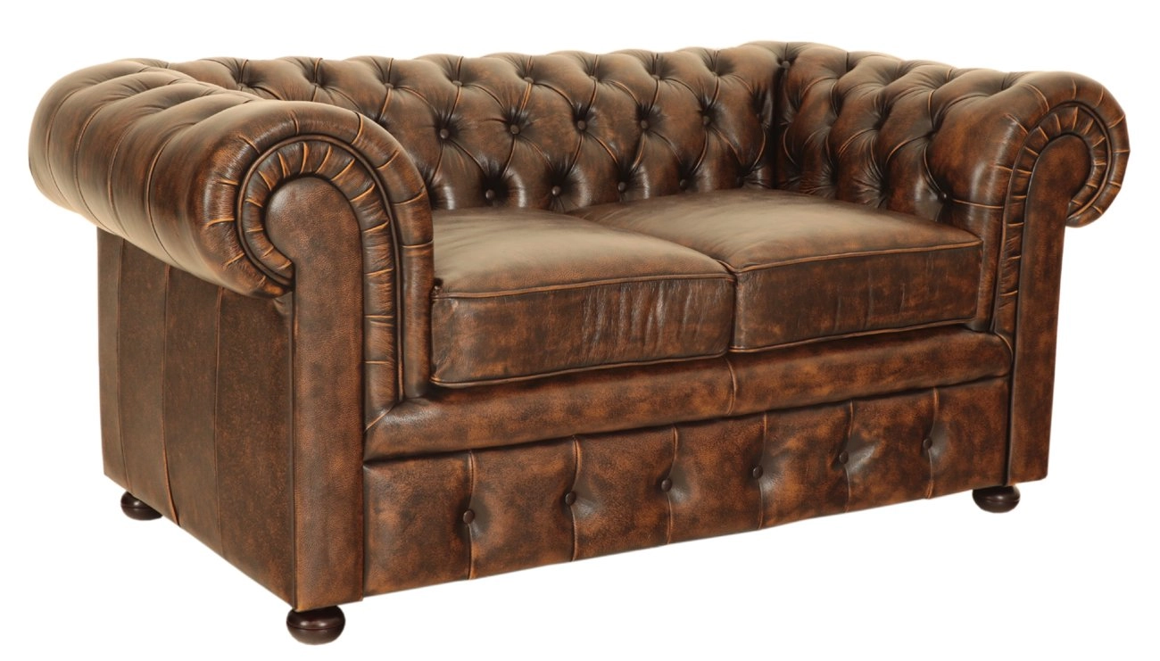 Die zwei-sitzige Chesterfield-Couch aus echtem Rindsleder ist modernes und qualitativ hochwertiges Möbel.