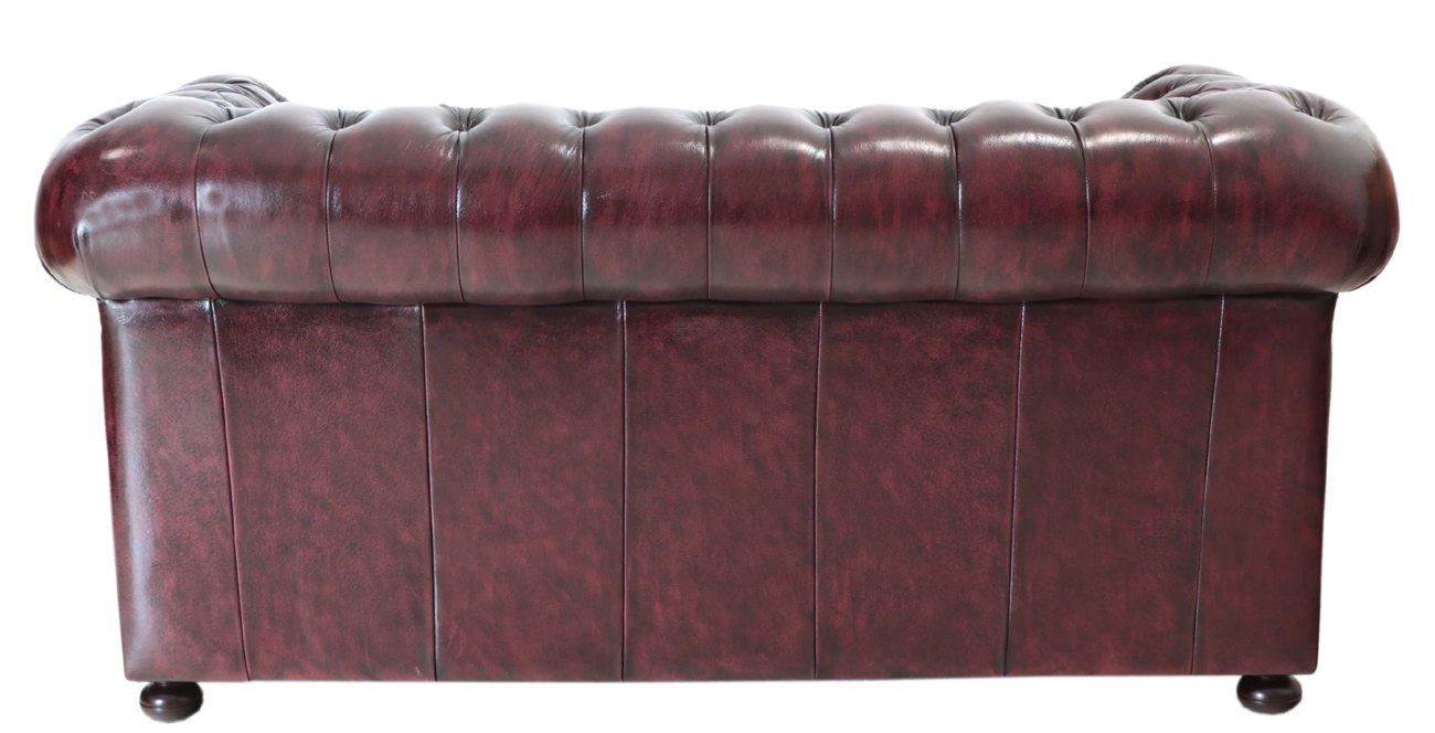 Chesterfield pohovka dvoumístná vyrobena z pravé hovězí kůže s prošívanými a elegantně zaoblenými područkami vnese do každého interiéru nádech luxusu a stylu. Pohovky Chesterfield, které máme skladem, si můžete prohlédnout v našem showroomu.