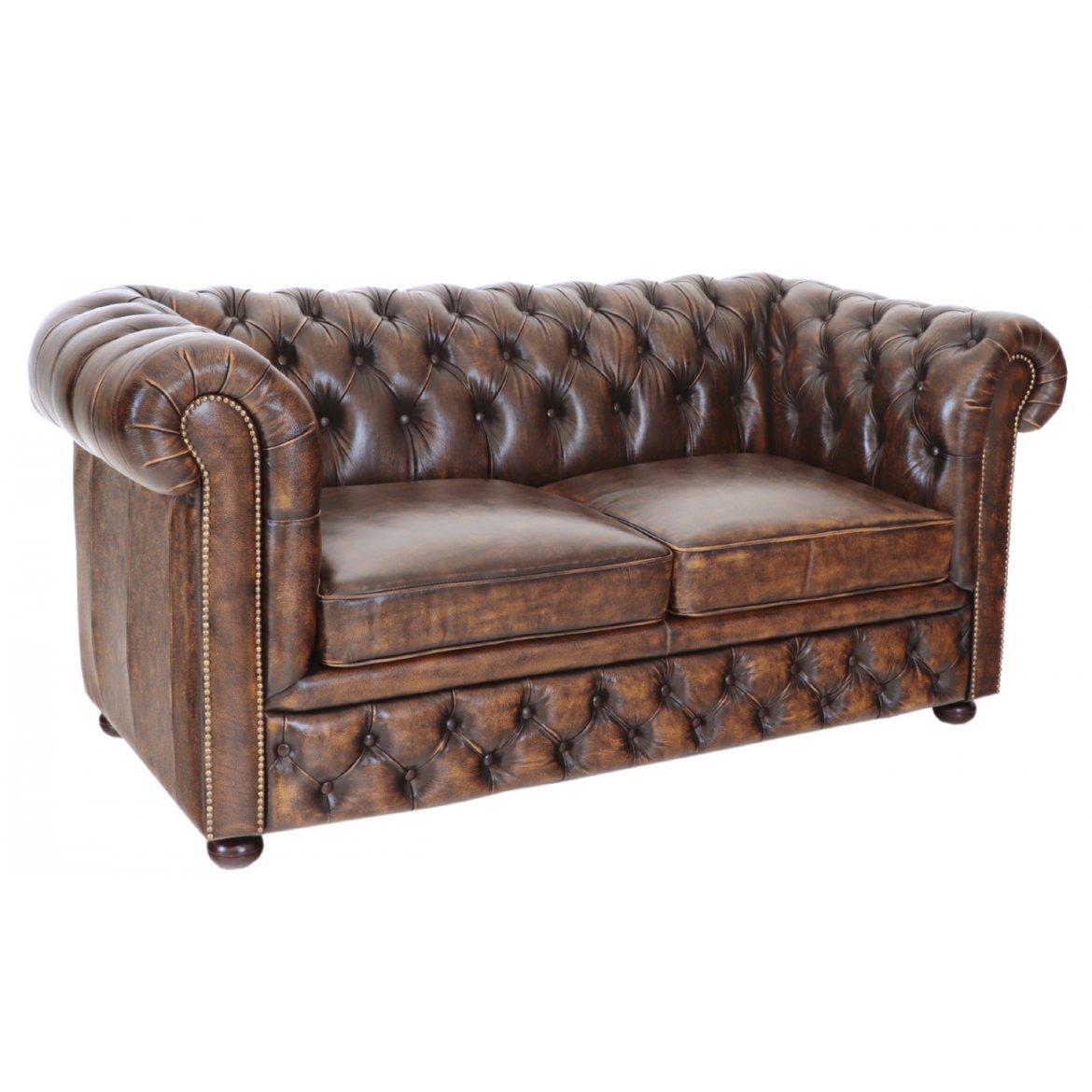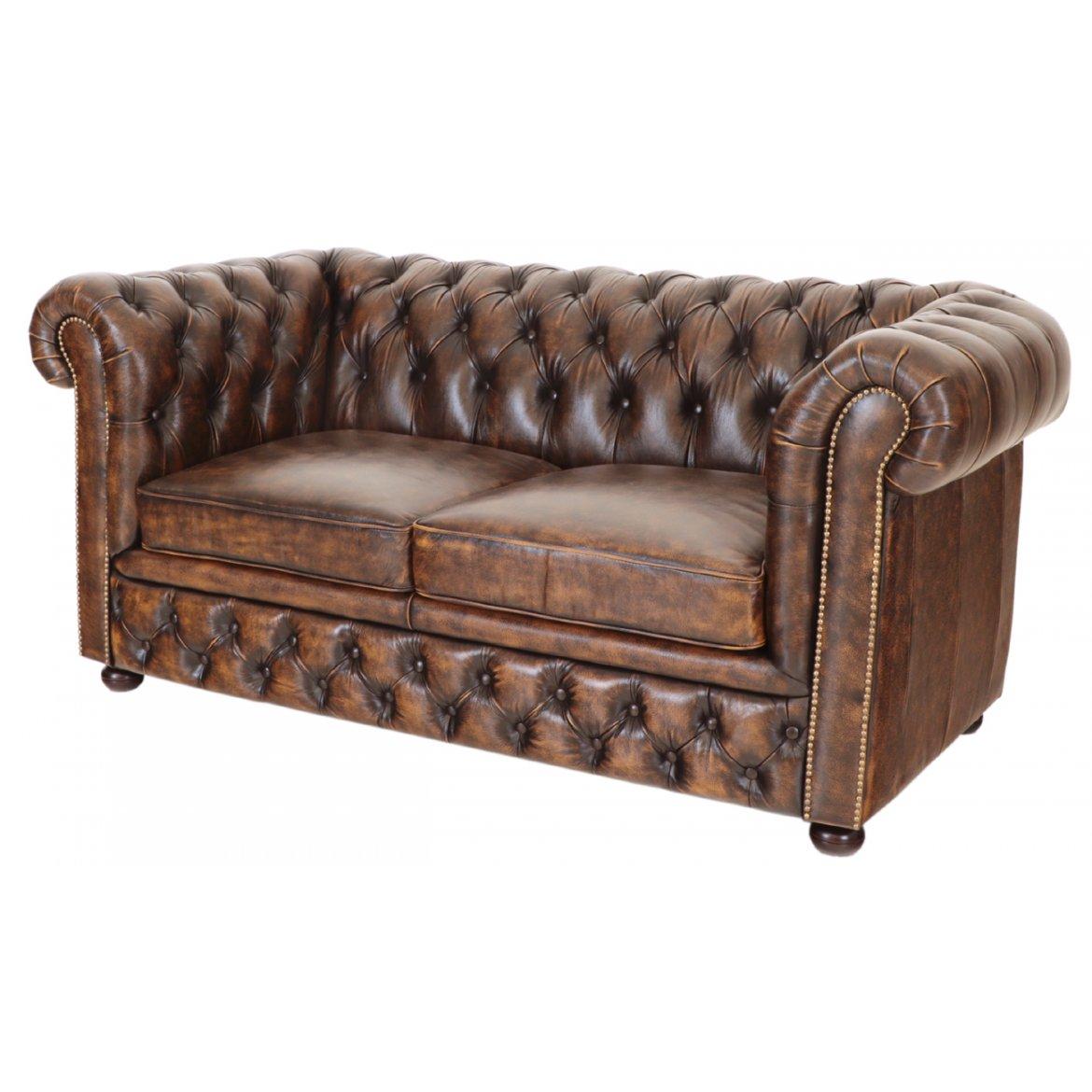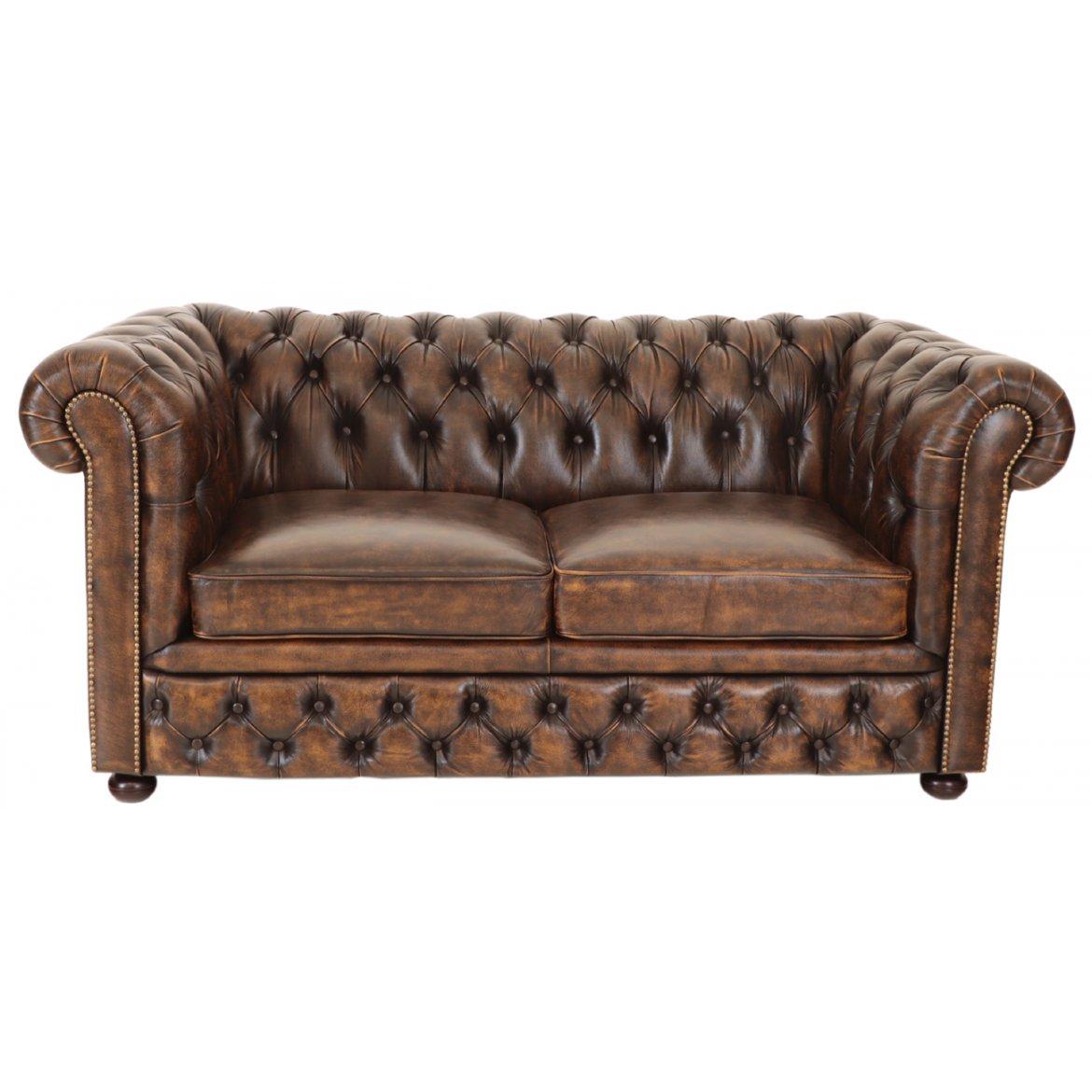 Die zweisitzige Chesterfield-Couch aus echtem Rindsleder ist modernes und hochwertiges Möbel.