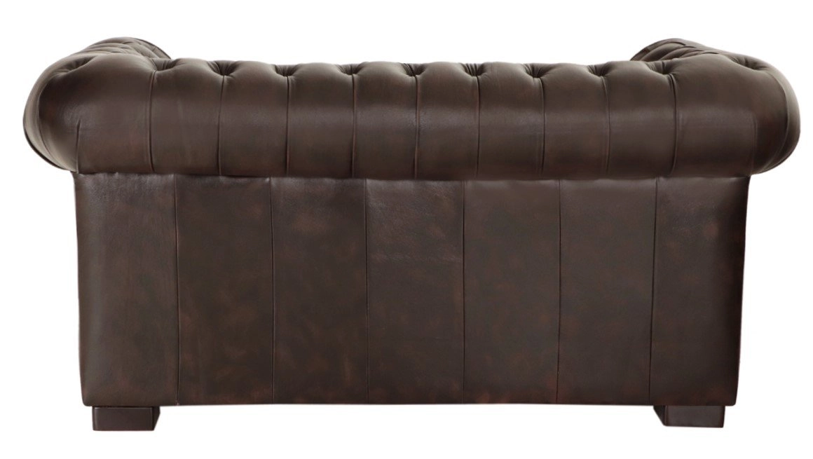 Kožená sedačka Chesterfield dvoumístná z kolekce Tiffy je symbolem elegance a sofistikovanosti, kterou si zamilujete. Tato mimořádná sedačka pochází až z Indie a je vyrobena z kvalitní hovězí kůže, která zaručuje nejen luxusní vzhled, ale i dlouhou životnost. Šířka 155 cm, hloubka 94 cm a výška 78/48 cm činí z této sedačky Chesterfield ideální volbu pro jakýkoliv obývací prostor. Typická prošívaná zadní opěrka a zaoblené područky dodávají sedačce Chesterfield jedinečný charakter, kterým si podmaní každého, kdo se posadí.